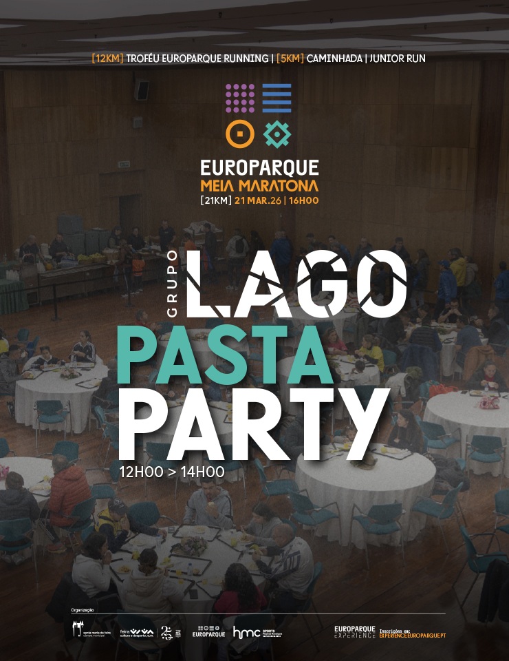 A Pasta Party decorrerá no dia 21 de março, entre as 12:00 e as 14:00, no EUROPARQUE.
